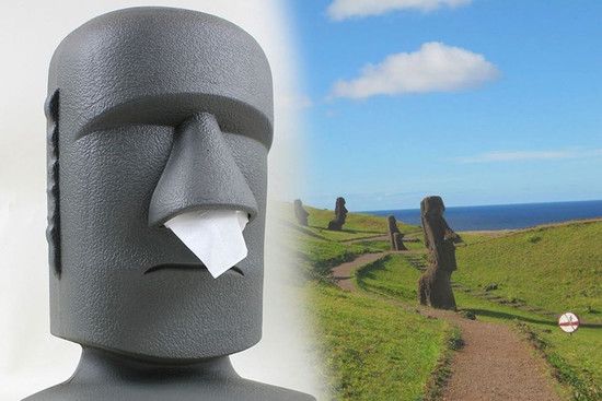 复活岛上的巨石怎么出现在家里了呢?这座智利摩艾石人像其实是一个纸巾盒,哑光圆滑磨砂的手感,幽默的“鼻孔”出纸,适合国内大部分超市里售卖的袋装纸巾,不说不知道,乍一看还以为是斥巨资购入的艺术雕塑呢。