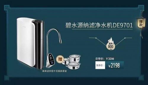 活动期间,碧水源纳滤净水机DE9701直降900元,仅需2198元即可入手,晒单还送价值千元锅具套装。