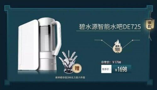 活动期间,碧水源智能水吧DE725直降100元,仅需1698元即可入手,晒单送价值399元刀具六件套。