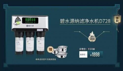 活动期间,800加仑碧水源纳滤净水机D728直降1300元,仅需1898元即可入手,晒单还送价值千元锅具套装。