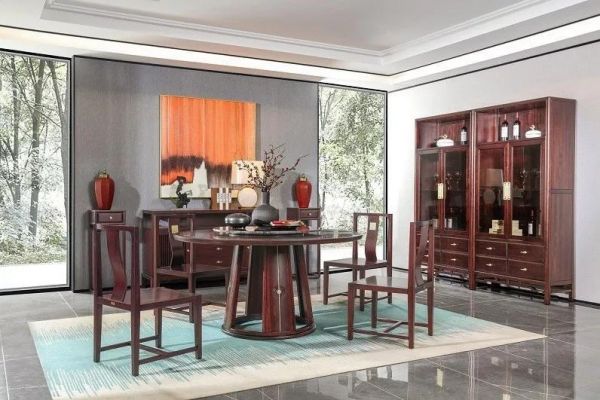『观意』甄选南美黑酸枝作为原材,墨色的表面糅合几抹暗金色,空间弥漫着大气的美感。在城市的繁华,与归隐的闲适间,以设计灵感为契机,浸润万古风雅,造意出具有东方文化精魂的现代质感。