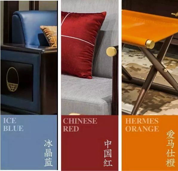 『观意』以木色为主,在黑白灰的基础上,辅之以冰晶蓝、月牙白、中国红、爱马仕橙……作为点缀,配色大胆明快,富有个性,轻奢气息凸显,风雅韵味呼之欲出。