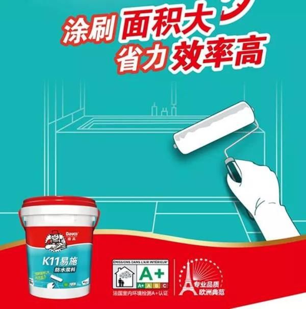 德高K11易施防水浆料是一种聚合物改性的双组份水泥基防水材料,由聚合物乳液、优质水泥、活性化学物质、精细骨料和多种助剂复配而成。产品抗渗性能好,安全环保,可滚涂施工,省时省力,,可用于砂浆、混凝土结构的防水处理。