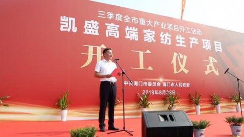 海门市委副书记、海门市人民政府市长郭晓敏女士上台致辞,对凯盛高端家纺生产项目的开工表示祝贺。凯盛家纺作为海门本土品牌,凭借不懈努力,从一个十几人的小作坊,发展成为现在一个拥有600多家门店的金牌企业,三十几年来规模快速扩大,“凯盛高端家纺生产项目”作为三季度全市重大产业项目,也标志着凯盛家纺向着更大更强规模进发!