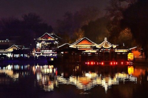 北京什刹海洋溢着浓郁的老北京风情,坐上木制摇橹船,看五彩灯光,享受现代都市中的经典月色,和家人或三两好友沿后海的石栏悠然漫步,轻松追逐天边的圆月。累了就在旁边找一家餐厅吃着团圆饭赏月,放一盏祈福的红色河灯。
