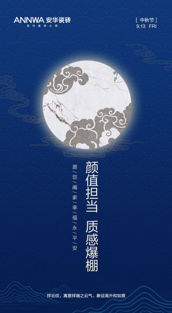 在中国传统节日里,总少不了“吉祥”的点缀,人们总是用它来表达团圆的喜庆,所以在这个中秋,不妨给家里来点吉祥吧!一片瓷砖足以让您以后每个节日都是吉祥满满,还能让您的家居装修效果在朋友圈C位出道。
