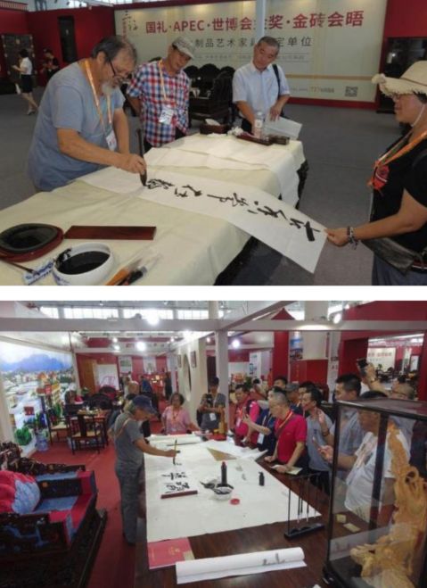台湾著名书画家吴鼎仁、唐敏达、盛菘俊、翁清土、李苡甄、陈秀娟、冯依文现场挥墨,将书画作品赠予组委会。
