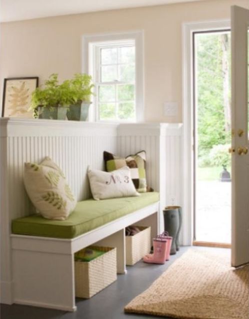 每次出门或进门时,站着换鞋是不是很不便利呢?在鞋柜周围做个能够坐下来换鞋的柜子就便利多了。