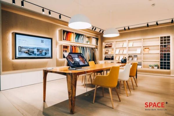所以,此次震旦办公生活旗舰展厅命名“Space+”,其中“Space”表示空间,即场景;“+”代表各种可能性,即体验,通过多元化设计实现人们对于健康、愉悦办公空间的向往,帮助人们高效地完成工作、在工作空间内学习成长、提升工作中的幸福感(Well-being)。