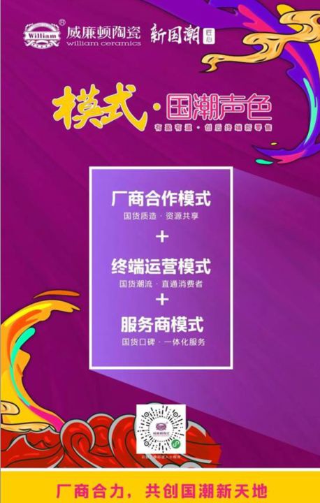 "国潮"兴起,无数品牌竞相争锋,想要在陶瓷行业的新国货时代中赢得一席之地,成功"出圈",经销模式就要针对性地转变与调整。威廉顿陶瓷智启后终端技术的新零售模式,全新的战略合作关系,为厂商双方赢取盈满而有声有色的"国潮"新成果,合力共创国潮新天地!