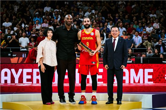 比赛结束后,西班牙球员卢比奥获得了本场比赛的MVP,赛后,2019男篮世界杯大使科比上场为卢比奥颁发MVP奖杯。当科比走上颁奖台的一刻,随即响起全场最热烈的欢呼声。尽管科比已经退役多年,但科比的一举一动依然引发球迷热议,他的一言一行也深刻的影响了本届男篮世界杯。他的那一句“美国队,别以为已经稳了”,甚至贯穿了整个男篮世界杯。