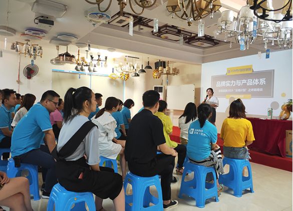 2019年9月7日,创锐瓷砖众培计划终端培训衡阳站拉开帷幕,创锐瓷砖市场部经理谢丽琼、区域经理费杰到达现场为衡阳家博大家装公司的五十余位员工进行培训,为终端团队能够快速提升营销与服务能力而助力,一起为赢战终端市场而激发强大的动力!