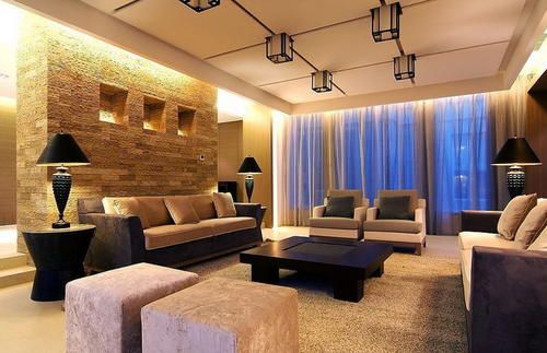 窗帘尽量选择落地窗帘,这样会显得更加大气,能起到烘托室内的装饰效果。