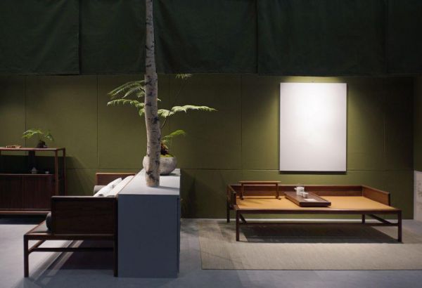 关于色彩的选择,近两年素元越来越多的使用绿色作为空间营造的主要色彩,这也源于我们更重视在环境中身体的体验,而非视觉的兴奋。人对环境的感知是直观的、本能的,这种具足源于人身处自然中的反馈。正是这些感受感知的反馈讯息,构成了舒适。素元的家具以黑胡桃木和樱桃木为主要原料,回到人对自然的本能直观感受中,与原木最直接的链接就是绿色,小到树木本身的枝叶,大到森林的环境,这种天然的对应,早就植于人的感官和体验中。所以,营造氛围的布料素元选择了偏暖的绿色,加上布料本身的特殊质感,使得整个环境像一幅古画的背景,素元的新款家具置于其中,颇为古雅。