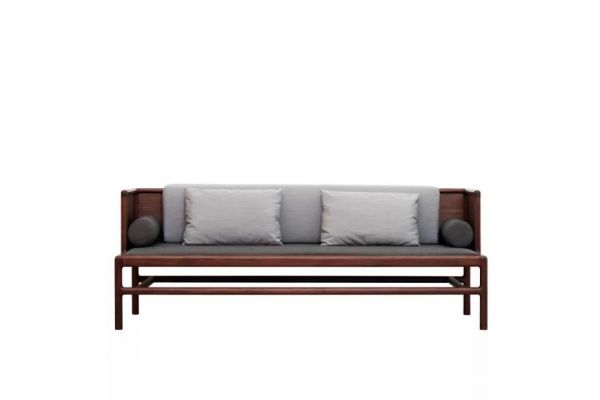 如云沙发在形式上仍然采用了罗汉床三面围合的方式,但造型从简,通过细节的改变和设计,让它成为一个更贴近生活、日用的一款产品。