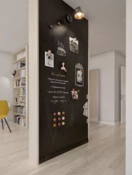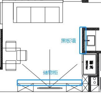 在客厅侧墙上,小马还为孩子设计了一面黑板墙,来发展孩子的艺术细胞。