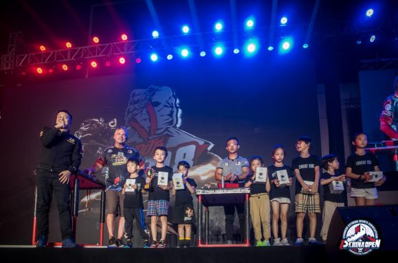 9月15日晚上,2019中国斗腕公开赛颁奖仪式及闭幕式现场,万佳安智能科技CEO许明携手美国传奇斗腕大师约翰.布泽克、职业斗腕联盟(PAL)主席依戈尔.马祖连科、TOP8世界顶尖斗腕大神、超力嗨体育文化有限公司董事长殷乐、中国极限运动协会斗腕委员会常务副主任张旭等人,共同为各组别获奖运动员颁奖。获得本次中国斗腕公开赛各组别的冠军均来自不同的国家和地区,但都遵循友谊第一的原则,无论输赢,竞技之后的握手言和让整个赛事场上充满激情和力量,场下又弥漫着温暖和平和。