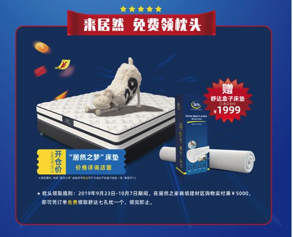 据悉,今年「开仓日」,舒达除了全国性的促销优惠之外,还将在居然之家商场上线多份优惠。首先,一款居然之家联名款舒达床垫“居然之梦”将隆重上市,600px的高度,包含舒达三大核心技术,适合多数居然之家消费者。同时,居然之家商场为消费者谋福利,只要在建材区购物满一定金额,即可免费领取舒达枕头七孔枕一个。从产品到服务,优惠力度,都能满足您的想象!