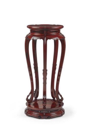 此香几通体采用白酸枝为材,几面为五瓣梅花式,腿中下部起云纹翅,足端做成如意头并雕饰向上翻卷的卷草纹。整体亭亭玉立,古韵绰约,或置花尊以插花,或单置一炉焚香置之厅堂,必使雅意盎然,漫室生香。