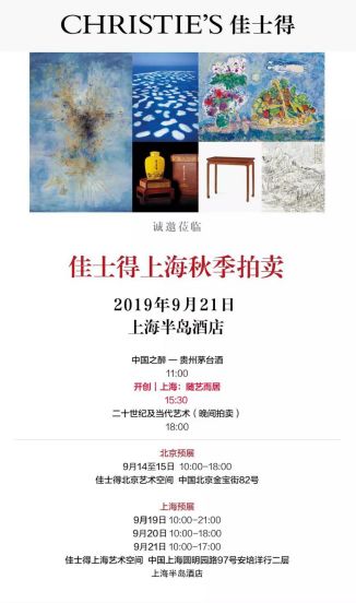将于9月21日佳士得上海“开创|上海:随艺而居”拍卖呈献