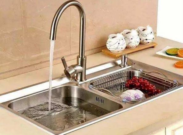 2、不锈钢水槽使用范围最多,质感能更好地融入厨房中的风格。它具有耐腐蚀、抗氧化、韧性好、坚固耐用的作用。