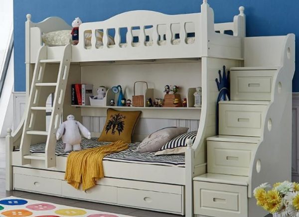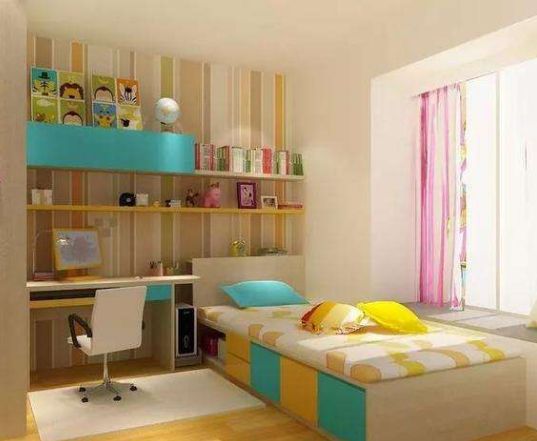 2、儿童房中的家具和收纳柜不能太多,越多越容易造成甲醛污染超标。儿童成长的速度比较快,每个成长阶段留下来的玩具等物品比较多,在这我们需要儿童房中的家具设计多功能或者组合式的设备。如市场上有很多的双层床踏脚的台阶就是设计成一个一个小箱子组成的,这样就可以合理运用了室内的空间。