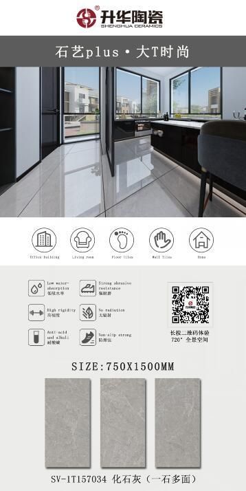 高调是它的外表,百搭是它的性格,看起来本应不合群的非常规大审美,却意外地风靡全球。一片片的瓷砖,点点滴滴的艺术渗透,承载生活中的美好,彰显着家居的时尚品味与格调,这样的大板瓷砖——升华陶瓷石艺plus·大T时尚系列750x1500mm通体大理石瓷砖,你心动了吗?