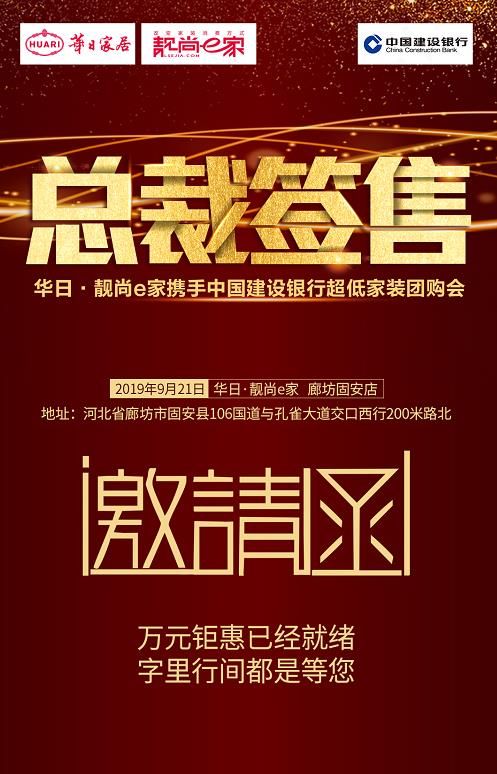 本周日,廊坊固安县,华日· 靓尚e家携手建设银行、华日家居联合举办一场装修团购盛宴。