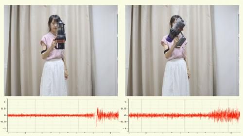地面清洁状态时,用户刚把机器握在手中,肌电波动图就明显呈现差别,立式/手持吸尘器由于重心更低,用户拿着机器时肌电图波动更小,这说明手腕肌肉活动更少,肌肉舒适度更高。