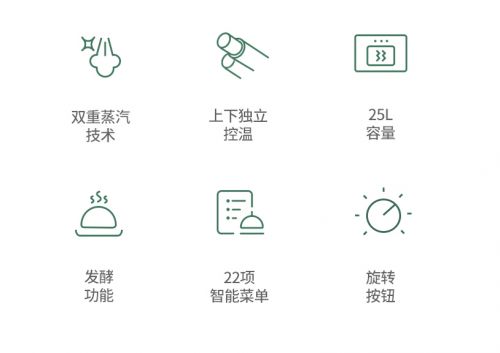 25L容积可以满足基本的家庭需求,从烘焙烧烤到纯蒸,各种菜肴轻松做,可代替微波炉热菜,可做烤箱烘焙,可代替蒸笼,均匀分散的蒸汽不会造成食物过水现象,食物更为鲜嫩可口,蒸鱼蒸馒头都可以轻松放入箱内,比传统的蒸笼更加实用。