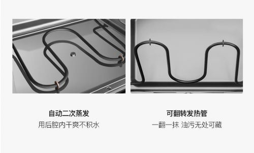 很多蒸烤箱是没有底部加热,使用之后容易产生很多积水难以清洁,而法格蒸烤箱采用上下M型加热管,这款设计非常人性化,可以直接抬起下加热管进行擦拭清洁,是懒人的一大福利,方便清洁。底部还有隐藏PTC辅助加热,能蒸发掉底部积水,减少清洁的烦恼。