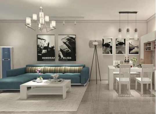 无界限设计冲击视觉感受,将多空间一体化,客厅与餐厅设计相融合,巧妙地运用地毯自然过渡,追求简单的舒适感。