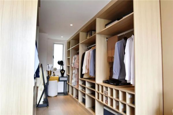 原木色的衣帽间,不仅在装修风格上与厨房空间达到视觉一致的效果,简约清新的风格更也具格调,也让别致的衣帽间显得敞亮了许多。