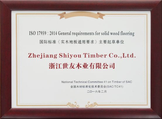 除了国内标准,世友地板也深受国际标准的欢迎。2018年年底,在世界享负盛名的国际标准化领域专业机构——国际标准化组织木材标准化技术委员会第17届年会于中国·浙江杭州召开,国内外木材国际标准化工作的相关单位和专家代表一同探讨林木业国际标准化工作。而作为唯一的协办企业和国际标准的起草企业,世友地板受邀出席会议。
