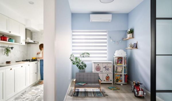 原本阴暗的阳台空间,运用颜色与建材的变化,搭配一张鲜艳的单椅便成为令人向往的北欧风小角落,很适合想要局部改造的家里参考。
