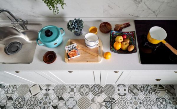 主要建材:超耐磨木地板、烤漆、系统柜、黑板漆、花砖