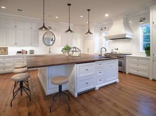 即是有双操作台,中间留出通道,呈现岛型设计。多数是开放式厨房中会选择的布局。