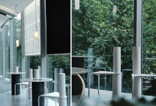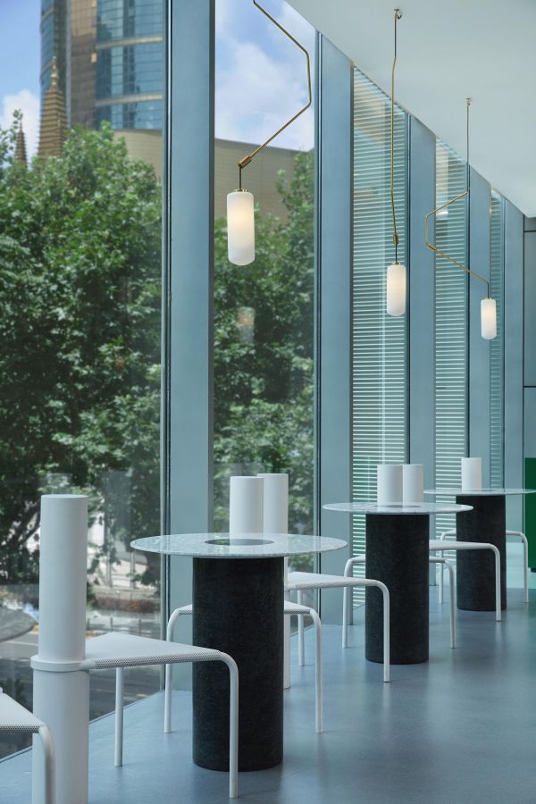 The local environment inspired us lot. We insisted on bringing the region memories to the restaurant. The truncated columns, in the store, are reflected the iconic golden pillars of the Jing'an Temple. We also transplanted the memories of the stones and plants of the Jing'an Park into the restaurant.