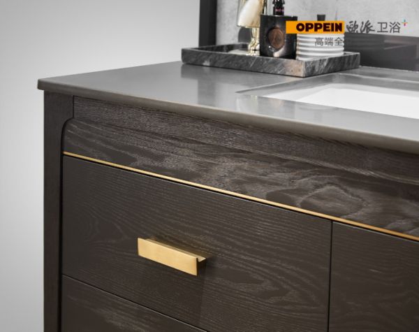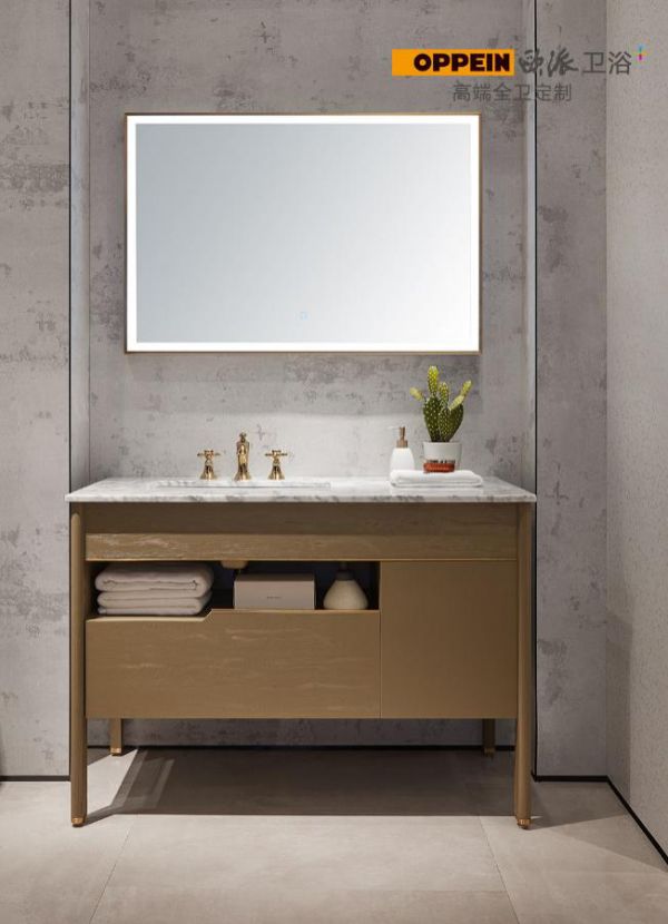 这款浴室柜,用孔雀蓝做主色调,优雅深邃,颇具贵族气质。金属是奢华的象征,用金线作为细节点缀,恰到好处的精致,不落入浮夸。