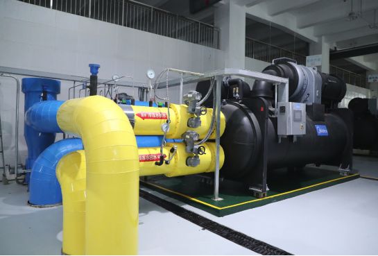 为了预防烟气中的腐蚀性成分,美的创新采用高效电压缩离心式热泵,热泵机组蒸发器和冷凝器的换热管均采用防腐蚀、耐酸碱的不锈钢材质,保证机组稳定运行。