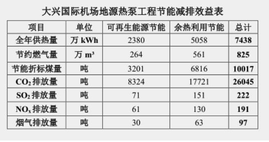 据推算,北京大兴国际机场地源热泵工程可再生能源和余热利用节能,相当于每年可减少二氧化碳排放量约2.6万吨,相当于种植140万棵树,满足北京市政府对于大兴国际机场的绿色建设指标要求,成为新时代重大工程绿色建设的标杆。