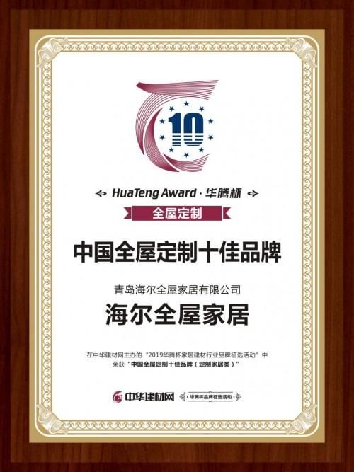 海尔全屋家居荣获2019中国全屋定制十佳品牌