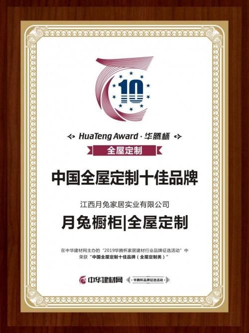 月兔橱柜|全屋定制荣获中国全屋定制十佳品牌(全屋定制类)
