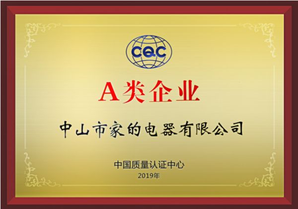 中国质量认证中心(CQC),是经中央机构编制委员会批准,由国家市场监督管理总局设立,委托国家认监委管理的国家级认证机构。此次,家的公司被CQC评为A类企业,一方面,说明了家的产品质量获得了权威的肯定;另一方面,说明了家的公司强大的制造、检测等实力获得公认。
