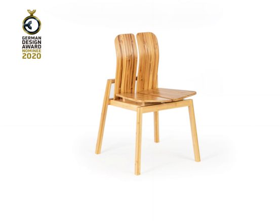本次活动,石大宇再显“开物”之智,推出运用竹新材料的原创作品《椅若即》《椅若墨》。设计师敏锐捕捉天然竹材和复合竹材的独特美感,以清新简洁的设计语言和符合人体工学的流畅造型,赋予竹材新生活力,造就艺术与科技的美妙融合。《椅若墨》获2020年德国设计奖优胜奖、《椅若即》获2020年德国设计奖荣誉提名也是首次亮相世园会
