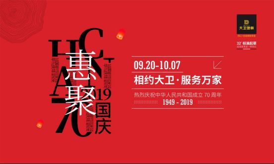 与国同庆,真情大放价,真正让利给广大消费者。活动期间,“工厂直供价”,“新品大放送”,“豪礼钜惠 ”等层层惊喜,让您买的绝对超值!大卫此次十一促销活动从9月20号就将开始,很多业主可能在十一期间已做好出行的计划,为了让他们置家和游玩两不耽误,这次活动也是提前放价,有需求的业主周末就可以来享实惠了!