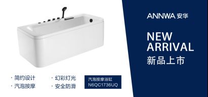 安华卫浴N6QC1736UQ汽泡冲浪按摩缸,根据人体工程学设计,腰、背、肩几处支撑点设计更能贴合人体曲线,躺在浴缸里更舒适。浴缸内部空间的设计较大,让泡澡不再担心空间不足,尽情舒展。