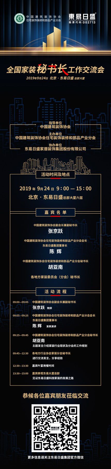 让我们将目光锁定在9月24日北京东易日盛集团总部大厦,一同聆听家装行业领袖们的精彩演说,共同探讨装企未来的路要如何坚定地走下去,走出一片新的天地宽广。