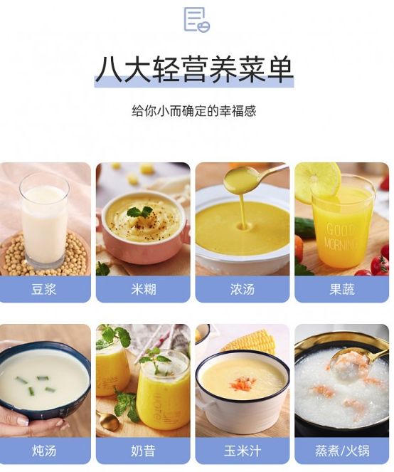 这样一台破壁机能够制作豆浆、米糊、浓汤、玉米汁,甚至是营养果汁、浓稠的奶昔,时刻照顾到饮食健康。