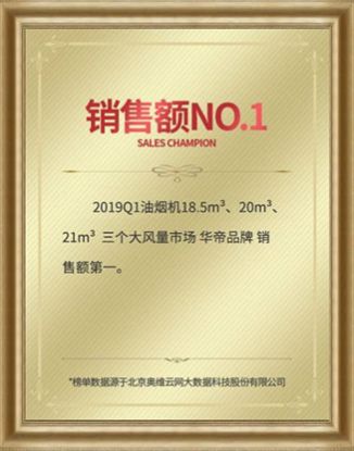华帝油烟机喜提三个大风量市场销售冠军